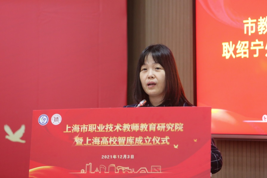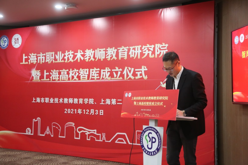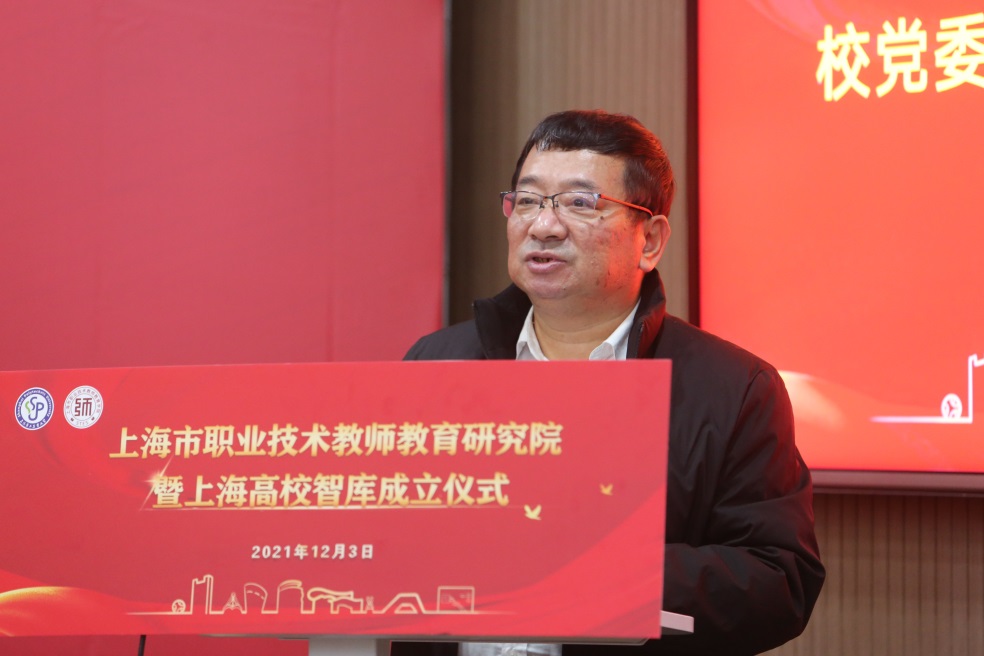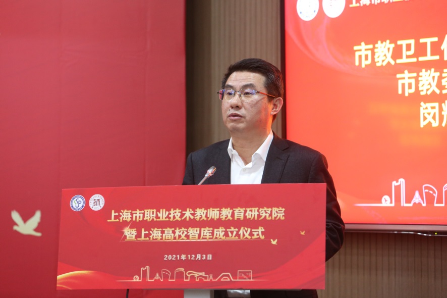 市教卫工作党委副书记、市教委副主任闵辉在讲话中首先向上海高校智库“上海市职业技术教师教育研究院”的成立表示热烈祝贺。他指出,近年来,上海高校智库在党的建设、国家安全、国际关系和上海强化“四大功能”等方面取得了丰硕成果。当前,职业教育站在新的时代方位和历史起点上,需要有一个强大的“智囊团”“思想库”进行科学谋划、顶层设计。研究院的成立,有助于深化基础理论和发展战略研究,进一步发挥职业教育支撑人才强国战略的动力源作用,代表上海高校智库研究版图进一步得到完善,也标志着太阳成集团tyc234cc智库建设迈出了坚实的一步。