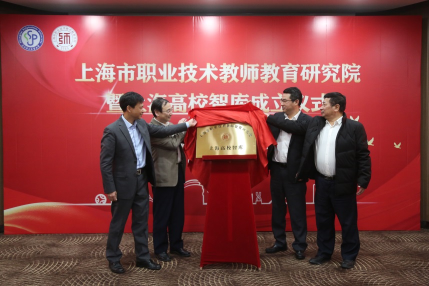 高德毅、闵辉、吴松、谢华清共同为上海市职业技术教师教育研究院揭牌。