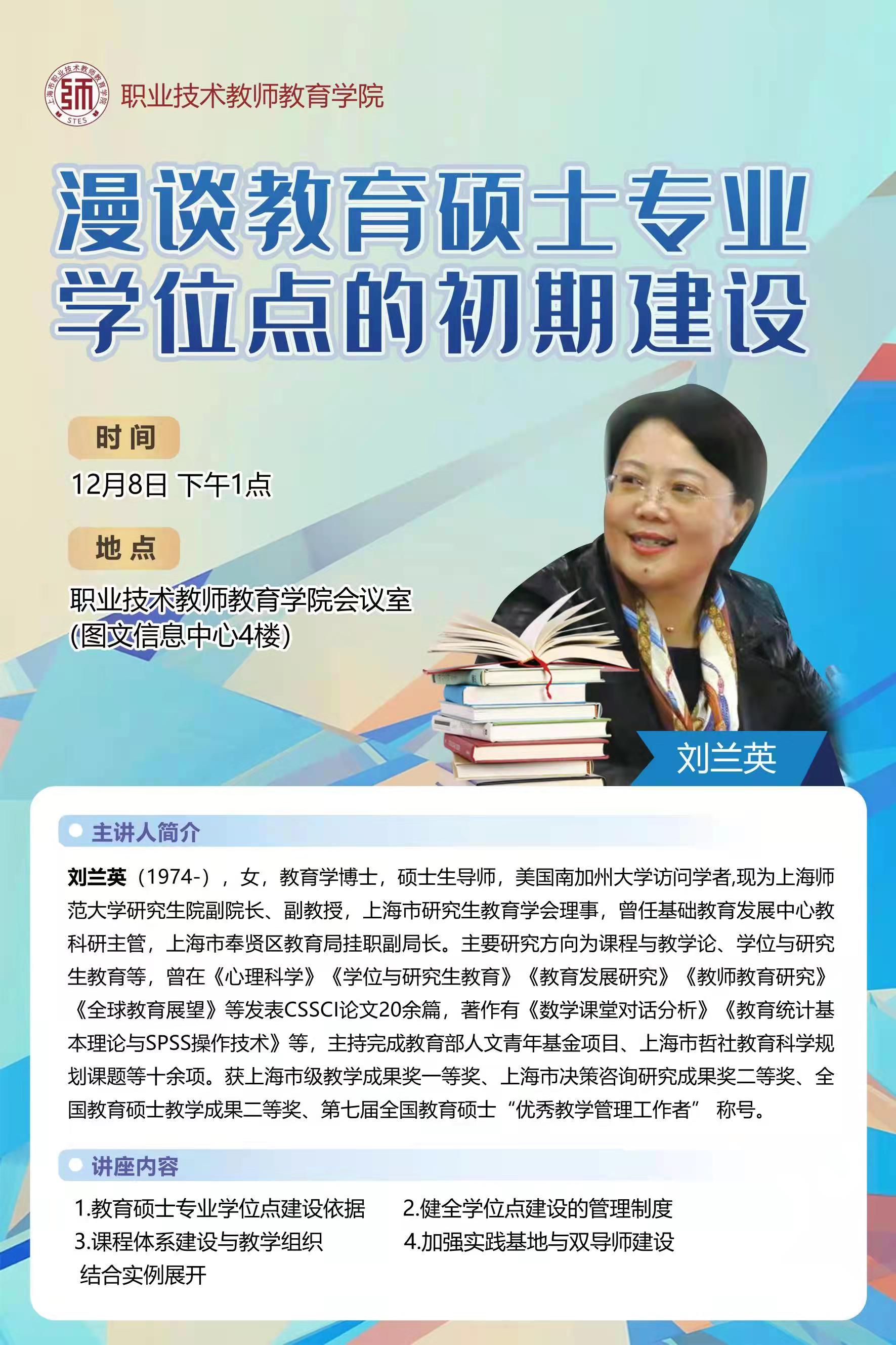 讲座:漫谈教育硕士专业学位点的初期建设主讲人:刘兰英
