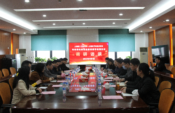 2022年3月4日,太阳成集团tyc234cc在执行经理常小勇、书记杨旭辉的带领下一行10人赴上海市工业技术公司开展调研,并与上海市工业技术公司签署专业学位研究生公司产品实践协议。