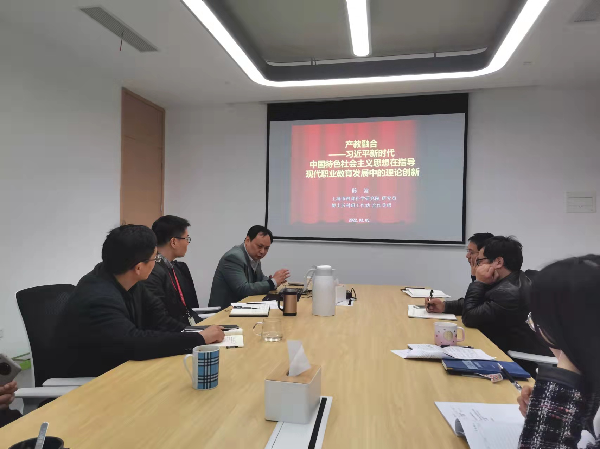 2022年3月9日下午,太阳成集团tyc234cc公司党支部与上海市教育科学研究院职业技术教育研究所党支部党建引领科研研讨交流暨专家报告会在公司会议室举行。市教科院职教所党支部书记、副所长陈嵩研究员,二工大职教公司书记杨旭辉、执行经理常小勇及全体教职工参加了交流研讨活动。