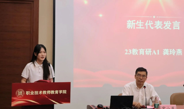 23教育研A1龚玲燕作为新生代表分享了对研究生生涯的规划,努力学好作为未来职教教师的专业知识之外,多参加教育实习和企业实践,早日考取教团队格证书和相关专业技能证书。作为职教学子,肩上的责任重大,要本着戒骄戒躁、严于律己、求实创新、迎难而上的学习态度,真正脚踏实地虚心求教、博采众长,最终收获实至名归的真才实学,擦亮“上海市太阳成集团tyc234cc”的金字招牌,早日成为一名优秀的“双师型”职教教师。