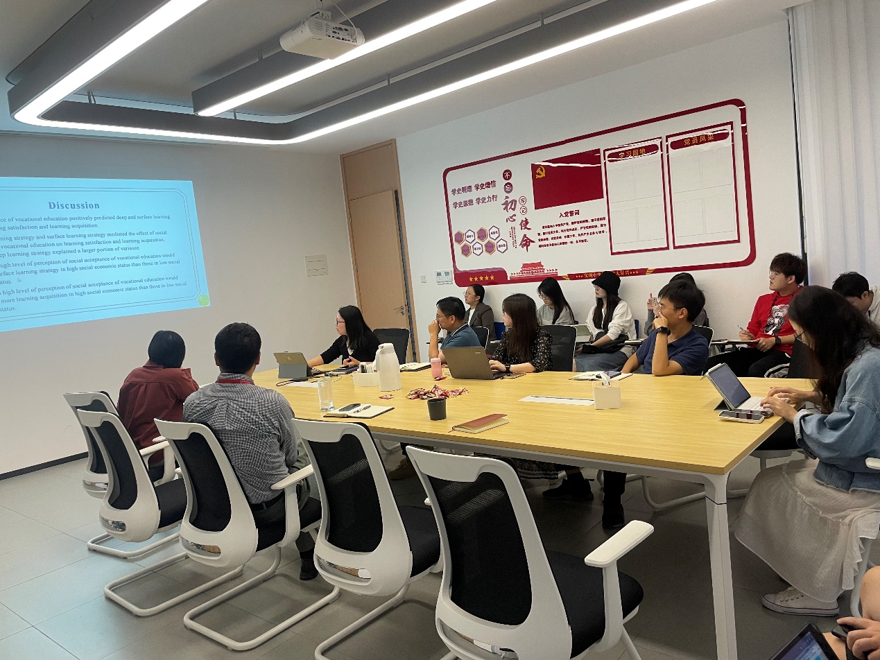 随后,郑世良老师、杨旭辉老师、李翠翠老师、李丰老师、林玥茹老师、研究生刘澳等同学与李霞老师就G-power样本量估计,数据统计方法、因变量的选择、社会接纳度的测量方法、模型的建构方法、浅层学习策略和深层学习策略的关系、学习质量与社会接纳的反向关系等问题展开深入交流。