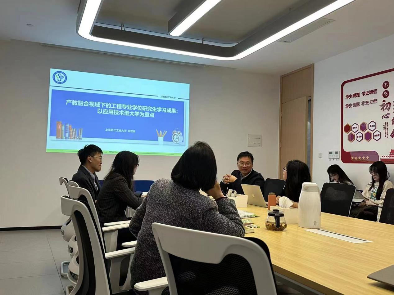 李丰老师汇报完后,郑世良老师以“产教融合视域下的工程专业学位研究生学习成果:以应用技术型大学为重点”为主题进行汇报分享。主体内容分为三大部分:其一,产教融合与工程专业学位研究生教育的关系审视;其二,产教融合环境对工程专业学位研究生学习成果的影响:一项实证研究;其三,应用技术型大学工程专业学位公司产品:以太阳成集团tyc234cc为例。在系统介绍研究成果的基础上,总结了研究不足与展望。