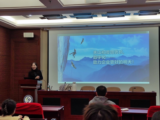 程老师用生动的语言描绘了数字时代的发展趋势,将数字化比喻成一场时尚变革,企业像是在时尚秀上走秀,展示出全新的数字化风采。她谈到,数字化并非一蹴而就的目标,而是一场全新运营方式的转变。这就像是企业迎接时尚变革,不再是犹豫不决,而是勇敢迎接未知的时尚风潮。程老师通过丰富的实例,为同学们勾勒出企业数字化转型的实际场景,数字化就像是企业的“变身术”,让企业从物理形态进入数字世界,成为新时代的“数码精灵”。这种变身不仅仅是技术上的改变,更是一场全方位的文化变革,使得企业焕发出新的生机与活力。程老师坦言在数字化时代我们要以开放的心态迎接变革,注重数据驱动的决策,同时关注细节,从大处着眼,小处着手。