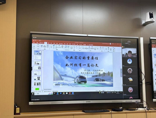 22电信研A8班李文强同学以《企业实践与测试设备开发》为题,分享了他在企业实践中遇到的碳化硅功率模块静态测试设备开发重难点,他建议学弟学妹们在企业实践的测试设备开发、方法改进与问题解决的视角切入,寻找论文的选题。