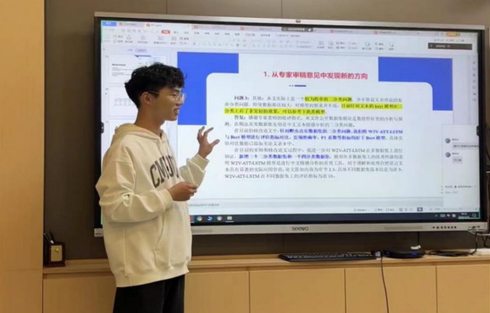 23电信研A3班张金同学以《W2V-ATT-LSTM:一种针对线上线下消费模式的新型顾客满意度预测模型》发表为例,深度剖析了在论文写作、修改、投稿过程中的感悟。他强调在论文写作中要注意文章结构的逻辑性、图标的重要性。而在软著撰写方面,他提醒大家应当严格遵循官方文件的规范,确保材料的完整性和准确性,更高效地完成软著申请工作。