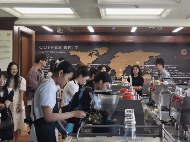 上海市贸易公司的负责老师首先向研究生们介绍了公司的教育理念、团队力量和教学资源。随后,相关专业负责人带领同学们参观上海市职业教育开放实训中心(焙烤、国际商务和物联网技术),观摩和体验了该校精品专业的员工实训活动。在参观过程中,教育公司研究生与在场的该校技能大赛种子选手就全国职业技能大赛经验进行了交流和探讨,了解了他们的备赛情况和经验。