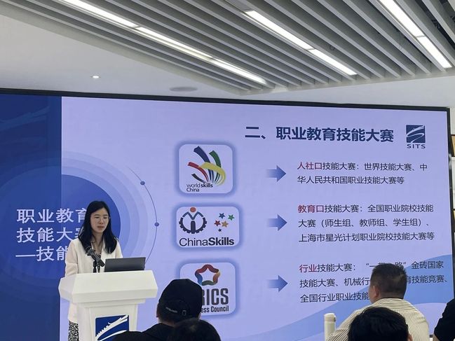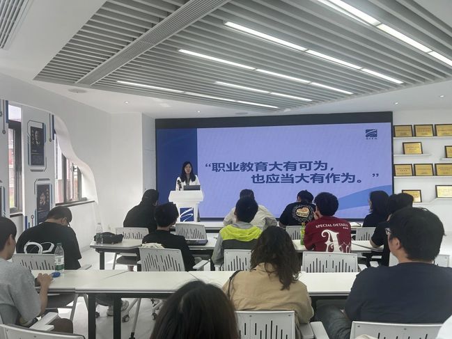 参观结束后,同学们前往“匠心馆”聆听了由上海市工业技术公司加工制造专业教学部副主任兼支部书记潘娇老师主讲的讲座——“中职专业教师发展路径探讨”。潘老师曾获全国职业院校技能大赛教学能力比赛一等奖、“星光计划”职业院校技能大赛教学能力大赛特等奖、入选2023年“东方英才”计划等。潘老师从事职业教育十余年的时间,具有丰富的教学经验,所授课程曾获国家精品在线课程。