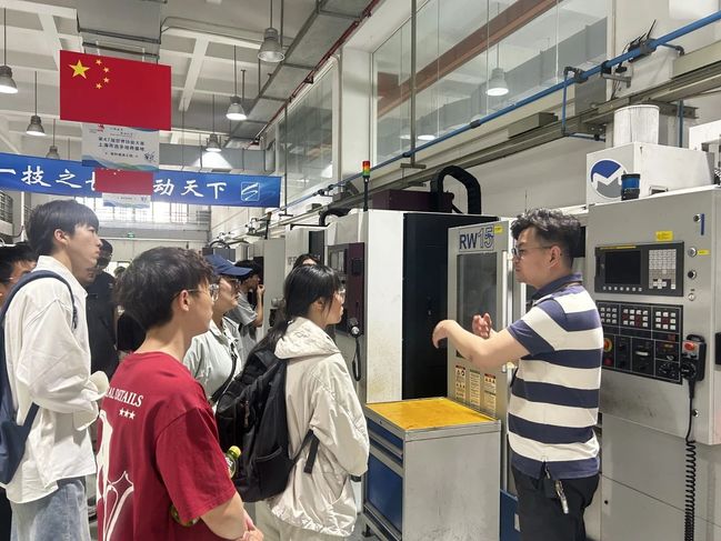 上海市工业技术公司负责老师带领同学们参观了开放实训中心,同学们观摩体验了虚拟仿真实训基地中技能大赛优秀选手的实训活动,身临其境地感受了他们的备赛训练。
