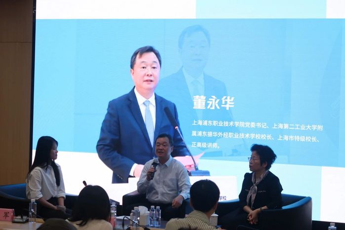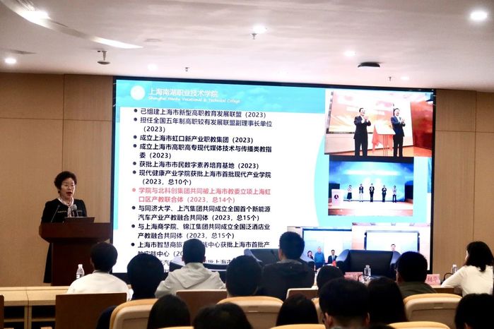 朱建柳经理作《基于新质生产力视角下的上海新型高职高素质技术技能人才培养的创新实践》主题报告。从产教融合、技能大赛和团队建设三大维度,展示上海南湖职业技术公司在新型高职人才培养领域的创新实践成果,分享公司在实现人才新“质”转化过程中的经验。董永华董事长从育人文化、专业结构、人才培养、教材建设及教师素养五个方面阐述在办学实践中践行教育家精神的重要性,明确公司肩负培养具有行业特色、家国情怀、全球视野的高素质技术技能人才、能工巧匠、大国工匠的责任。