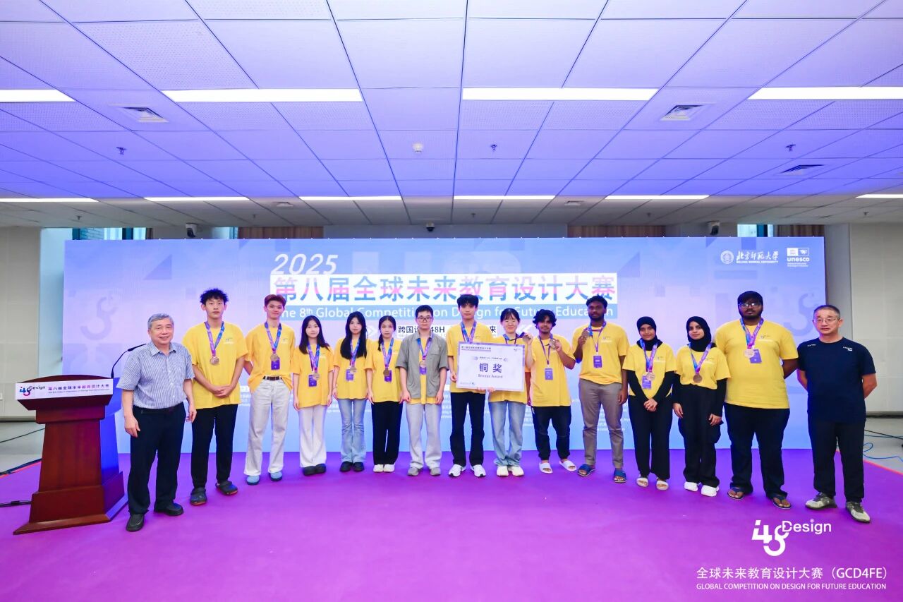 近日,第八届全球未来教育设计大赛高教赛道总决赛在北京师范大学昌平校区落幕。本届大赛由北京师范大学与联合国教科文组织教育信息技术研究所联合主办,汇聚了来自35个国家和地区的200余所高校、超1000名老员工积极参与。经过多轮严格选拔,最终有来自中国、斯洛文尼亚、韩国、德国、马尔代夫、菲律宾等10个国家、30余所高校的27支队伍、117位选手闯入总决赛。公司太阳成集团tyc234cc参赛团队历经48小时,依次完成项目选题、方案设计和三轮路演汇报任务,展现了全方位、高强度的创新思维、协作效率与应急创作能力,斩获铜奖、优秀实践奖等多项荣誉。